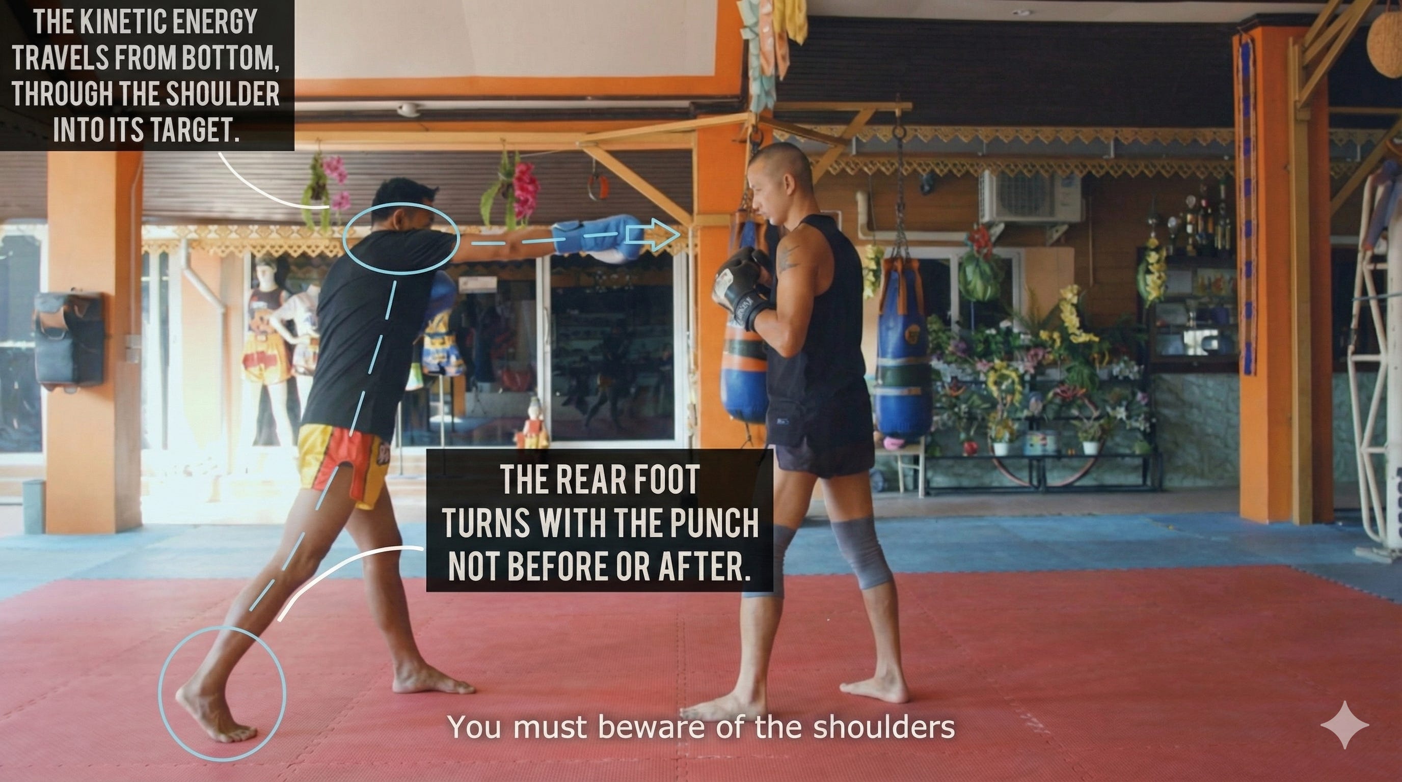 Amateur fighters rotate their hips, pause, then extend their arm. The chain is broken. The timing fractured.