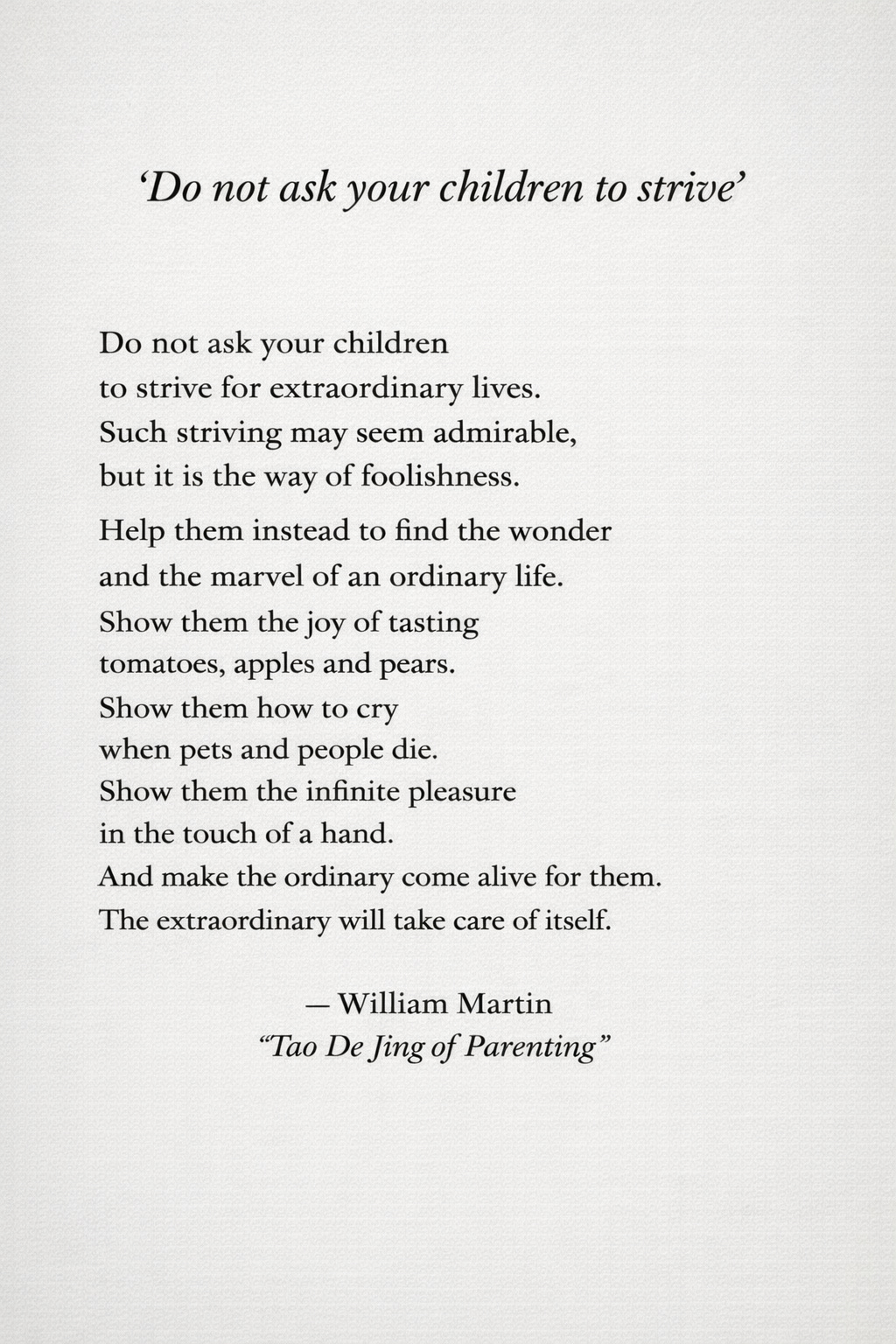 As the poem says, striving for the extraordinary may look admirable, but it is the way of foolishness.
